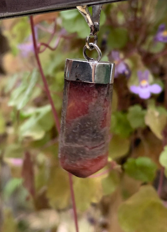 Rhodonite, pendentif pierre roulée, de 35mm x10 x7. Vendu avec cordon réglable de couleur noire !