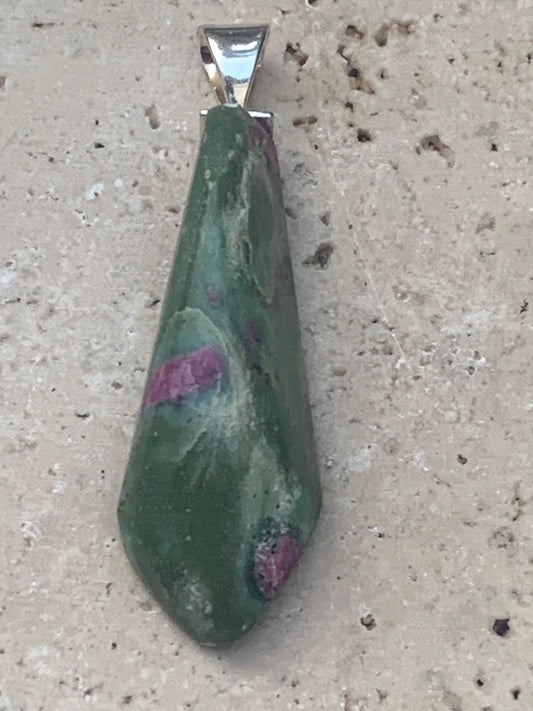 Rubis sur Fuchsite (micas vert), pendentif en Argent de 48 mm de ht x16 x6. Vendu avec un cordon réglable de couleur noire !