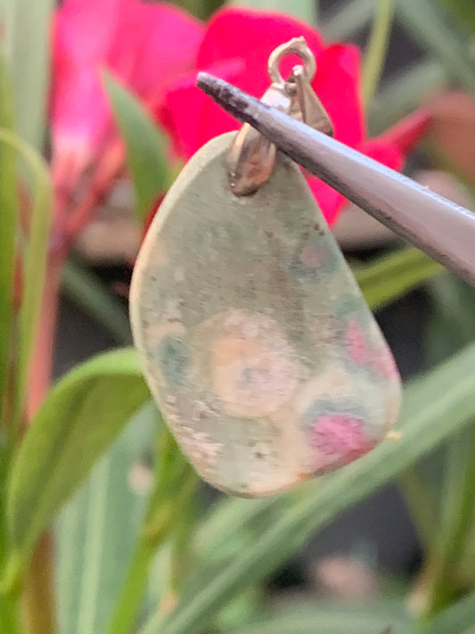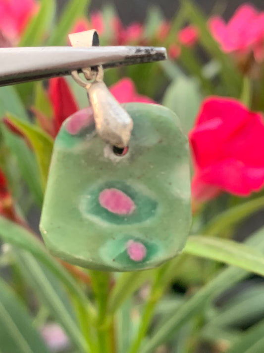Rubis sur Fuchsite (micas vert), pendentif en Argent de 32 mm de ht x15 x5. Vendu avec un cordon réglable de couleur noire !