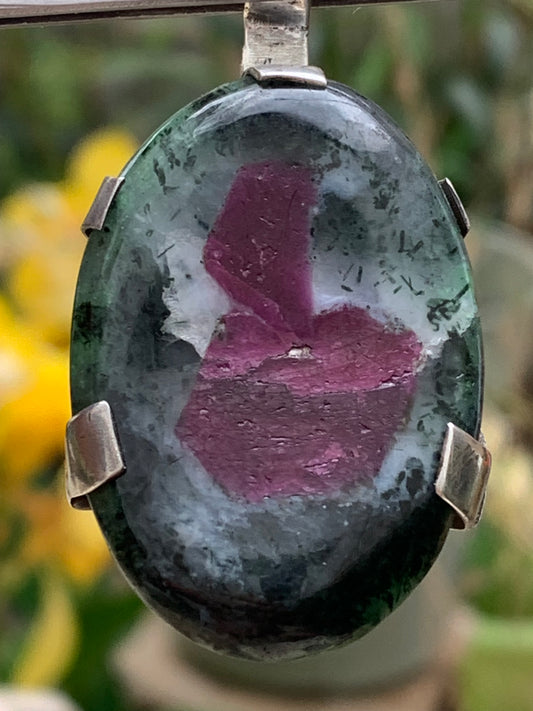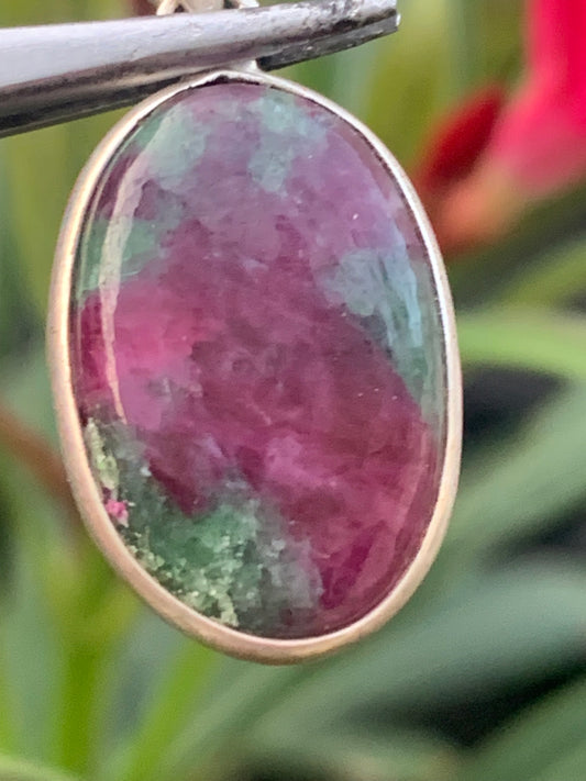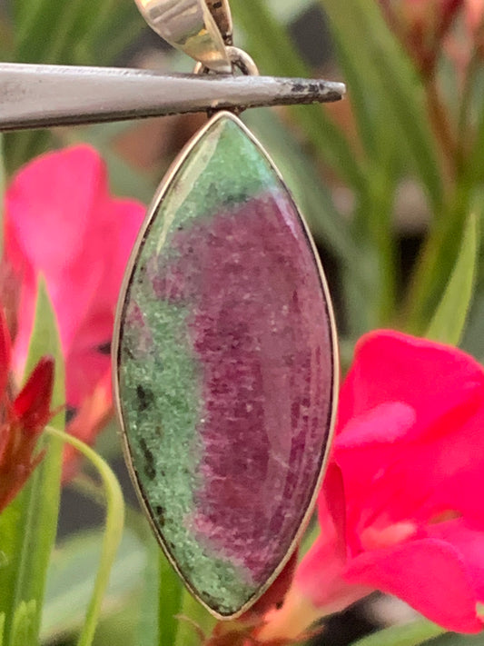Rubis sur Zoisite, pendentif en Argent de 52mm de ht x30 x8. Vendu avec un cordon réglable de couleur noire !