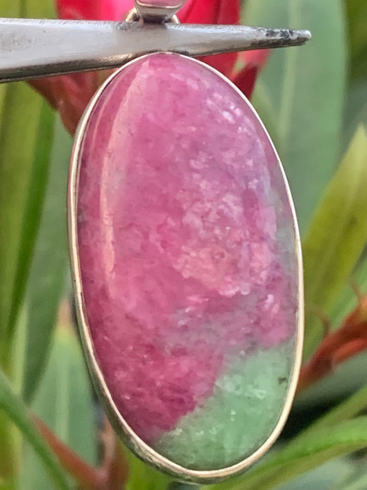 Rubis sur Fuchsite (micas vert), pendentif en Argent de 45 mm de ht x18 x8. Vendu avec un cordon réglable de couleur noire !