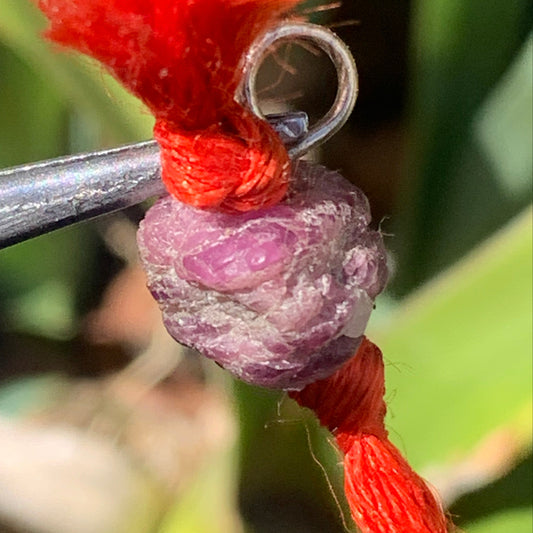 Rubis, cristal percé de 11mm x9 x8 - 1,4 grammes . Superbe corindon de rubis prêt à porter, vendu avec cordon réglable !