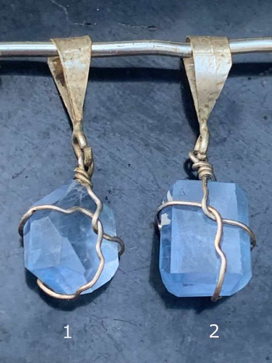 Topaze bleue, 2 pendentifs au choix en Argent, de 26mm de hauteur x 9 de largeur x 9 d'épaisseur. Vendu avec cordon réglable de couleur noire offert !
