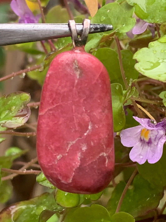 Thulite ! Pendentif en Argent 925 de 35mm de hauteur x 17 de largeur x 10 d'épaisseur. Vendu avec cordon réglable de couleur noire !