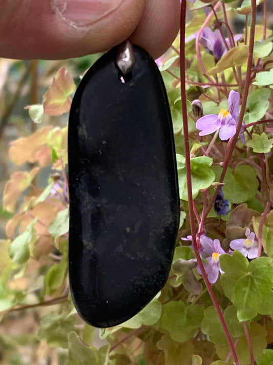 Shungite, pendentif taillé de 58 mm de hauteur x 20 de largeur x 10 d'épaisseur. Vendu avec son cordon réglable de couleur noire offert !