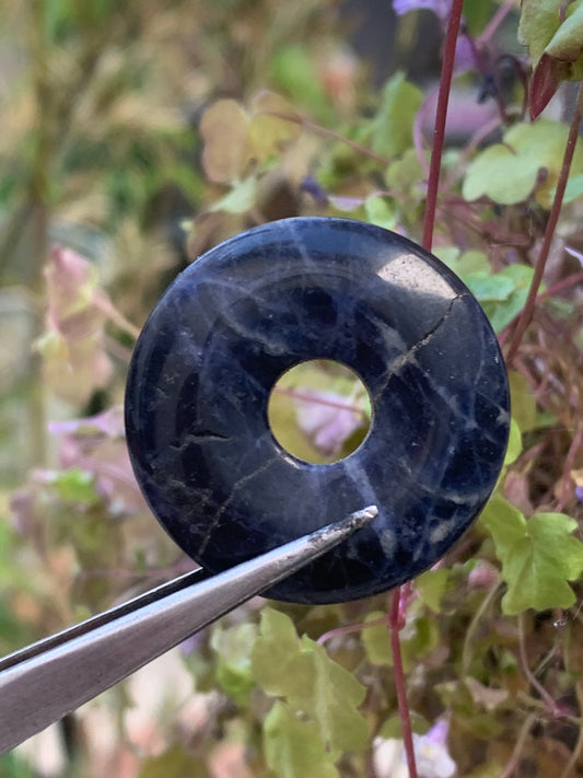 Sodalite, pendentif de type 'Donut's', de 30x30x5 millimètres, vendu avec cordon coulissant (réglable), en cuir noir de 40 à 70 centimètres !