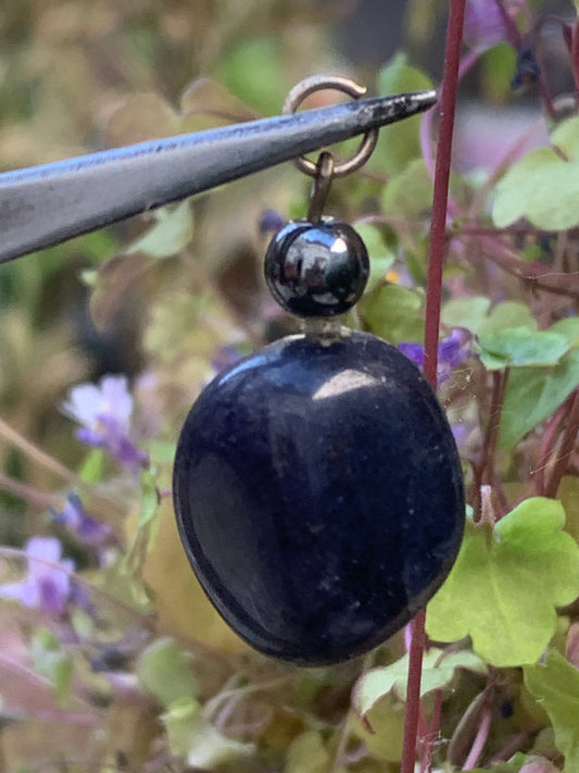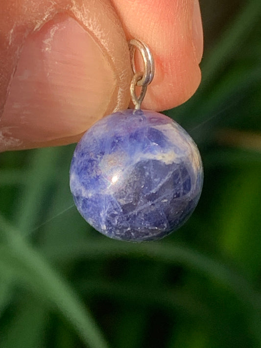 Sodalite, pendentif en perle de 14 millimètres de diamètre, vendu avec cordon coulissant (réglable), en cuir noir de 40 à 70 centimètres, fait par Gem et Zen !