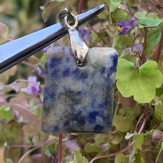 Sodalite, pendentif de 32x14x14 millimètres, vendu avec cordon coulissant (réglable), en cuir noir de 40 à 70 centimètres !