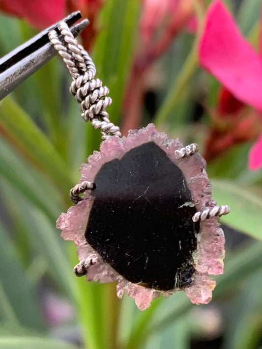 Tourmaline melon d'eau/ pastèque, pendentif en Argent fait par G & Z de 34 mm de hauteur x 18 de largeur x 6. Vendu avec cordon réglable de couleur noire !