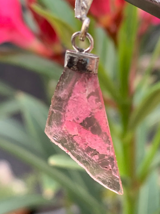 Tourmaline melon d'eau/ pastèque, pendentif en Argent de 38mm de hauteur x 13 de largeur x 2. Vendu avec cordon réglable de couleur noire !