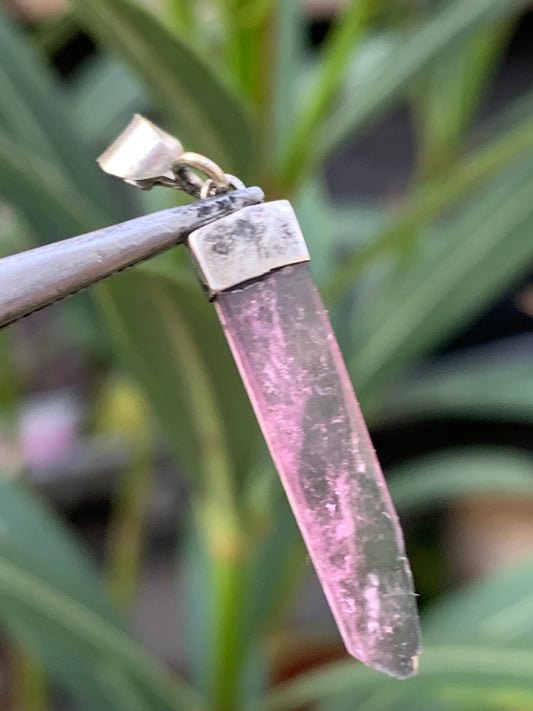 Tourmaline melon d'eau/ pastèque ! Pendentif en Argent fait par G&Z, 25 mm de hauteur x 10 de largeur x . Vendu avec cordon réglable de couleur noire !