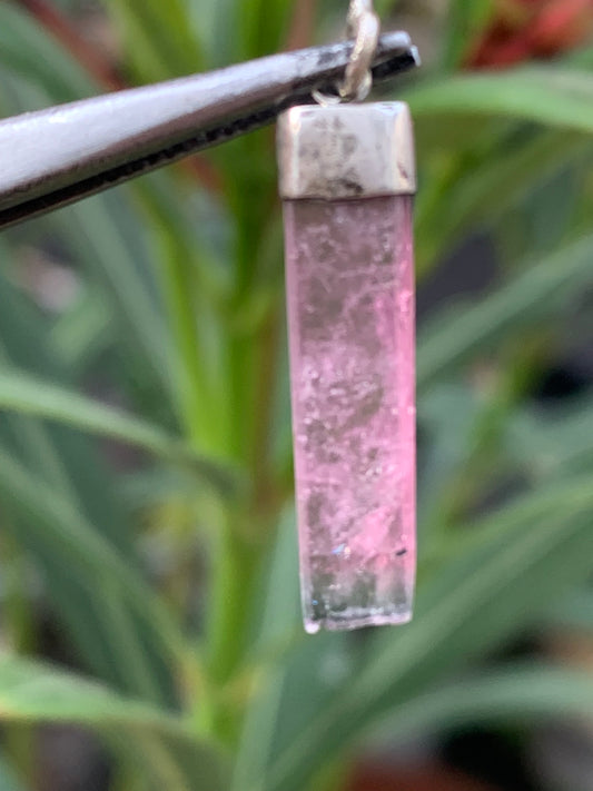 Tourmaline melon d'eau ! Pièce en Argent fait par Gem & Zen de 38mm de hauteur x4 de largeur x4. Vendu avec cordon réglable de couleur noire !