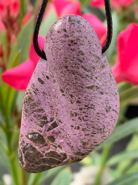 Stichite/ Stichtite, pendentif de 52mm de ht x30 x10. Vendu avec un cordon réglable de couleur noire !