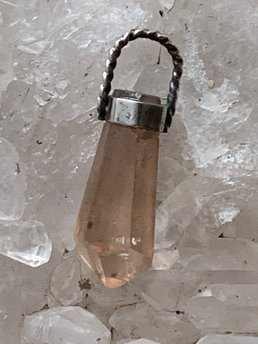 Cristal de topaze ambrée ! Pendentif unique en Argent d'une pierre rare, 30 mm de hauteur x 14 de largeur x 9 d'épaisseur. Vendu avec cordon réglable de couleur noire. Fait par Gen & Zen, discrète par sa taille, mais puissante par sa présence !