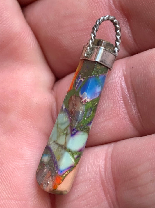 Jaspe/ Agate atypique rare, pièce unique en Argent de 40x9x7mm. Vendu avec un cordon réglable de couleur noire ! Fait par Gem et Zen