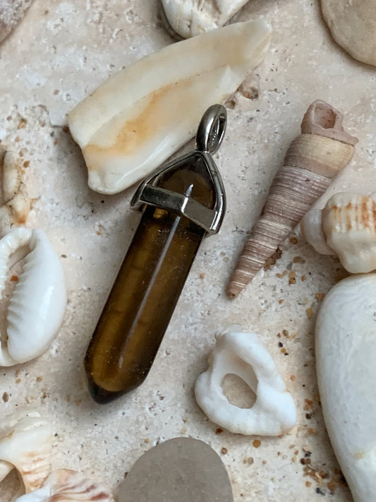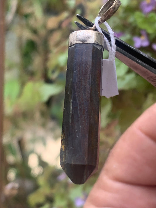 Oeil de fer, pendentif de type 'laser/ pointe' de 52 millimètres de hauteur x 8 mm de largeur x 8 millimètres. Vendu avec cordon noir réglable offert !