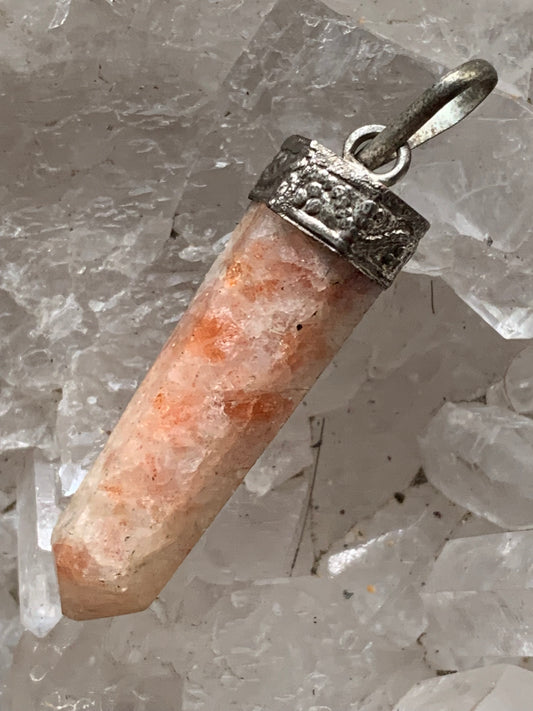 Pierre du soleil, pendentif de 44mm x 10 x 10 d'épaisseur. Fait sur métal (laiton), finition argenté. Vendu avec cordon réglable de couleur noire !