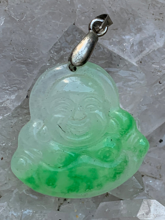 Bouddha, pendentif 100% en Jadéite de 40 x 30 x 7 millimètres. Livré avec cordon coulissant (offert), prêt à porté ou à offrir, parfait !