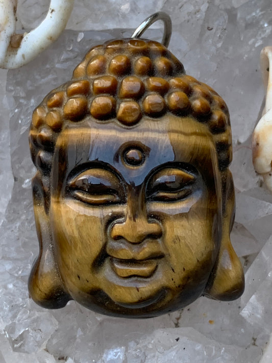 Bouddha, pendentif réalisé à 100% en oeil de tigre de 30 x 22 x 10 millimètres. Livré avec cordon coulissant (offert), prêt à porté ou à offrir, parfait !