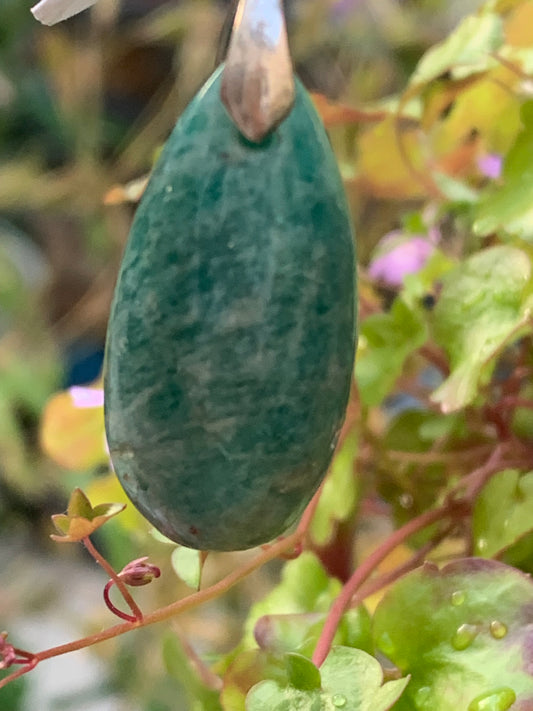 Amazonite, pendentif de 40mm de hauteur x 24 de largeur x 10 d'épaisseur. Vendu avec cordon réglable de couleur noire offert !