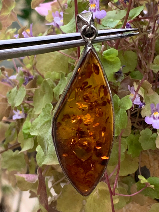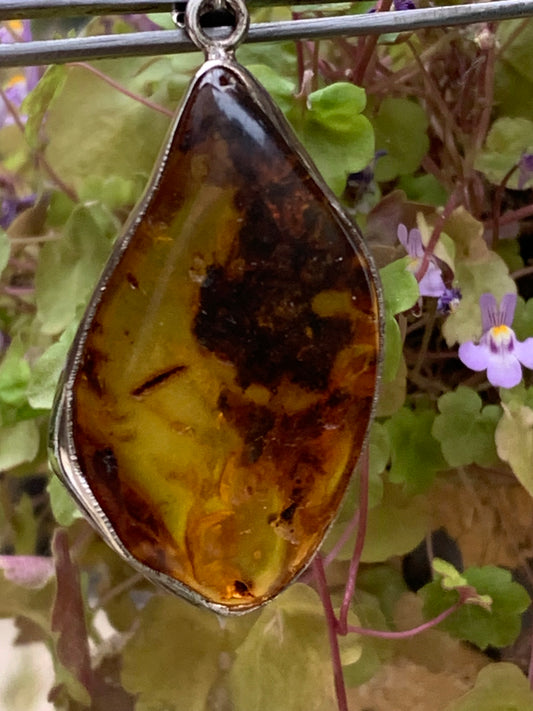 Ambre, pendentif en Argent de 52 x 18 x6 mm / 6,3 grammes, vendu avec cordon noir coulissant de 40 à 70 cm !