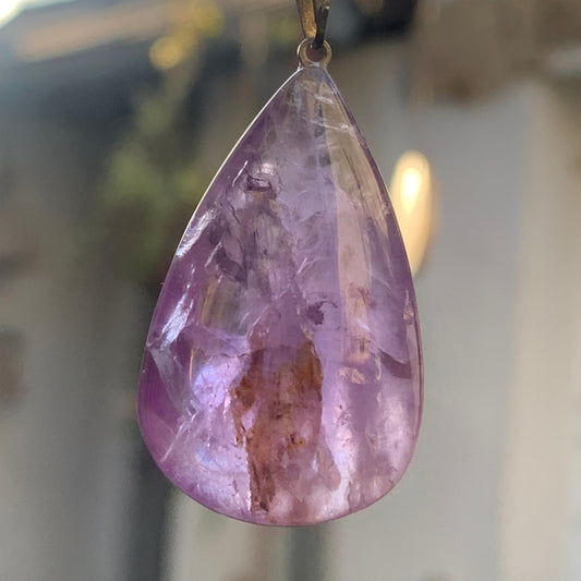Améthyste, pendentif 'goutte' de 42mm de hauteur x 20 de largeur x 11 d'épaisseur. Vendu avec cordon réglable de couleur noire offert !