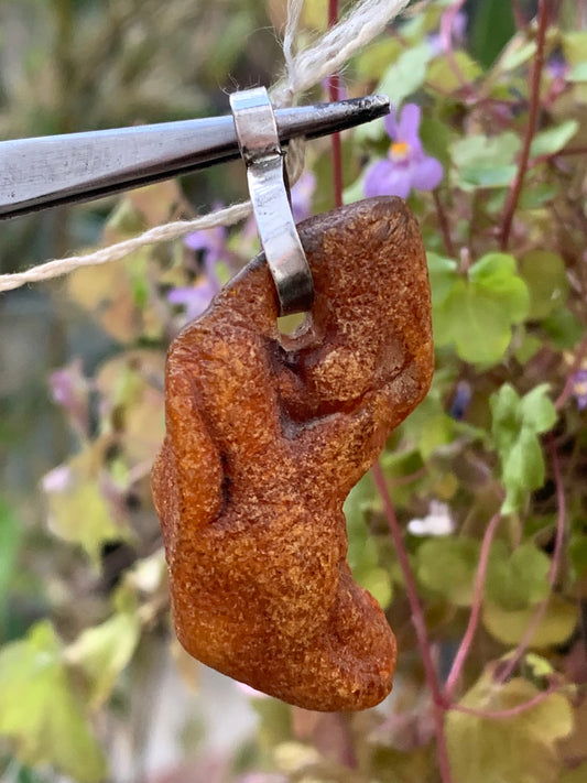 Ambre, pendentif en Argent, de 35x15x10 millimètres, vendu avec cordon en cuir noir de 42 centimètres !