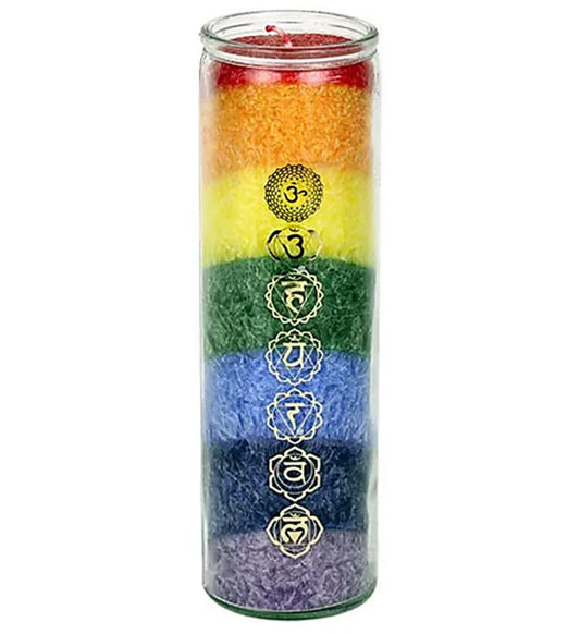Bougies des 7 chakras, durée de 100 Heures, à la stéarine et aux huiles essentielles de Cèdre et chèvrefeuille - 21 cm x 6,5 cm - 770 grammes !