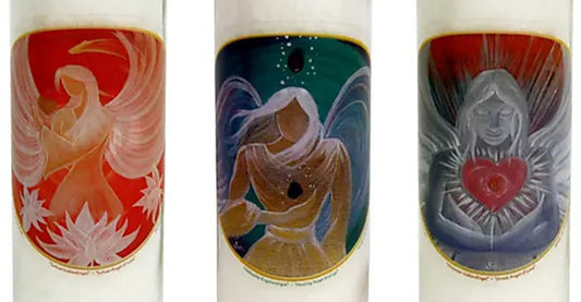 Bougies des 3 Anges, d'une durée de 100 Heures à la stéarine, 21 cm x 6,5 cm. Ange de l'amour , Ange de la guérison , Ange de l'amour !