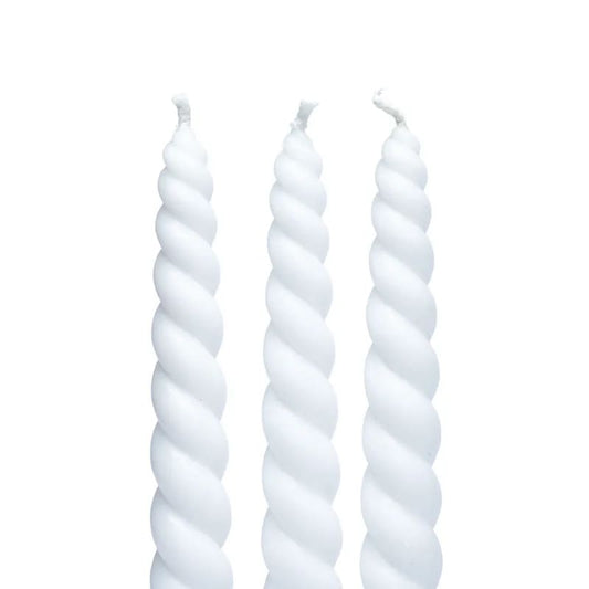 Bougies à la cire 100% végétale, torsadées, blanches non parfumées. Vendu par 3 - 23x2.2 cm - Combustion: 8/ 9 H. !