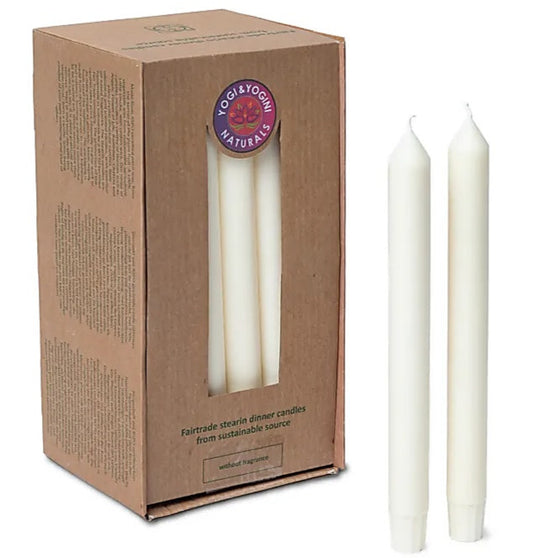 Bougie blanche à partir de cire de palme 100%, coniques. Vente par pack de 12 ou de 25 bougies. Non parfumée. 23x2.2 centimètres - Temps de combustion: 20/ 24 heures !