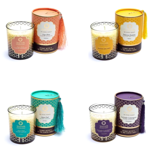 Bougie parfumée Ayurvédique, 6x9 cm - 20H de combustion. Kapha Sauge et menthe - nettoyant et rechargeant Beurre de coco et cire de soja Moins de fumée et de suie grâce à la mèche en coton Aux huiles essentielles naturelles !