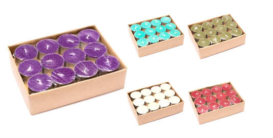 Bougies chauffe-plat parfumées à la cire 80% végétale et 20% huile de coco. Pack de 24 bougies, 3,8x2 centimètres - Temps de combustion: 5 à 6 heures !