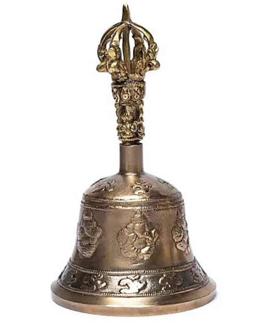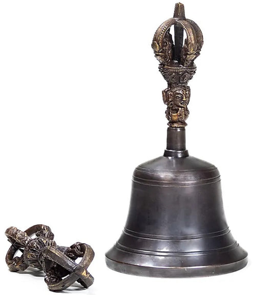 Dorje et cloche en bronze avec gravures de Ganesh. 2 tailles au choix de 17 à 22 cm !