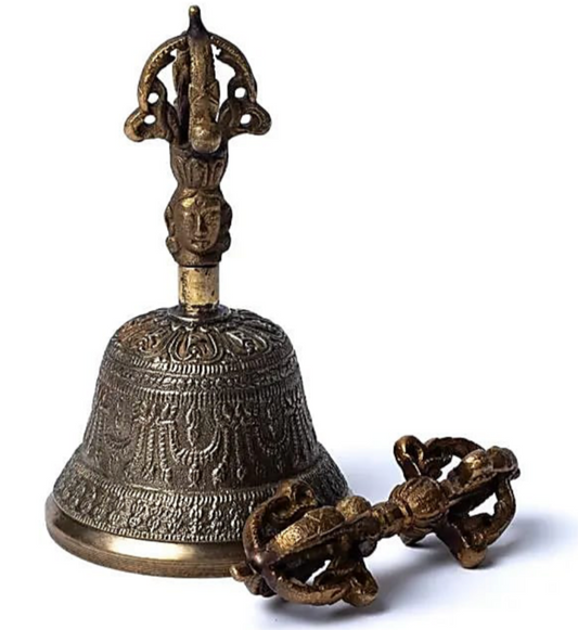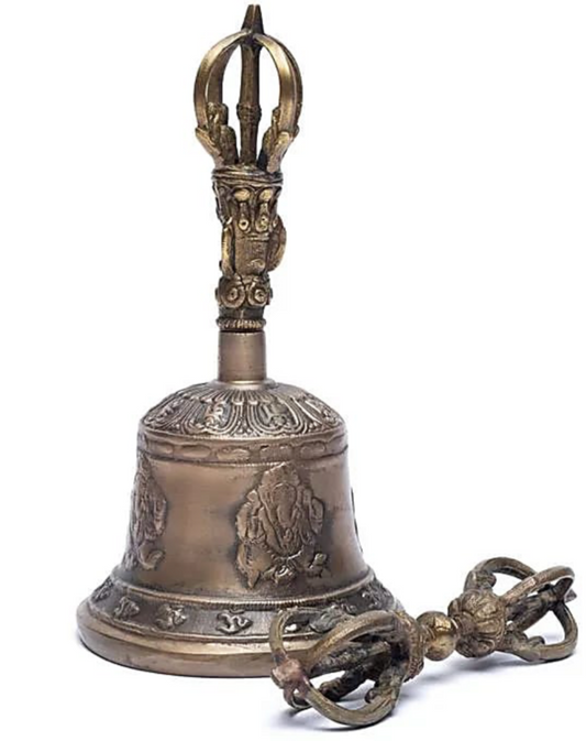 Dorje et cloche en bronze avec gravures de Prières. 3 tailles au choix de 9 à 17 cm !