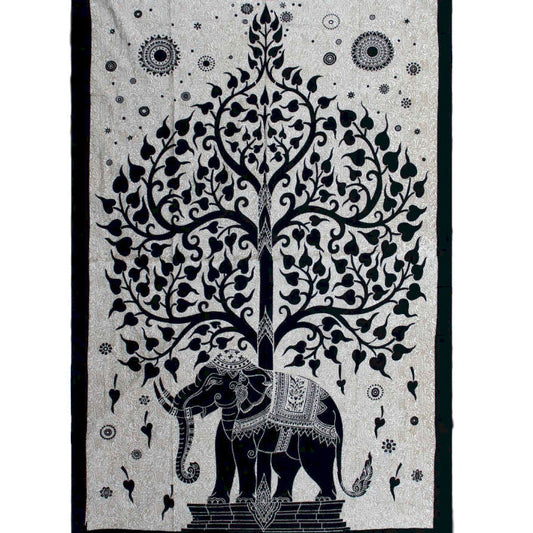 Couvre-lit/ Suspension Murale en coton - Motif monochrome de 'L'Arbre à Eléphants' - 200 x 130 cm - 380 gr.