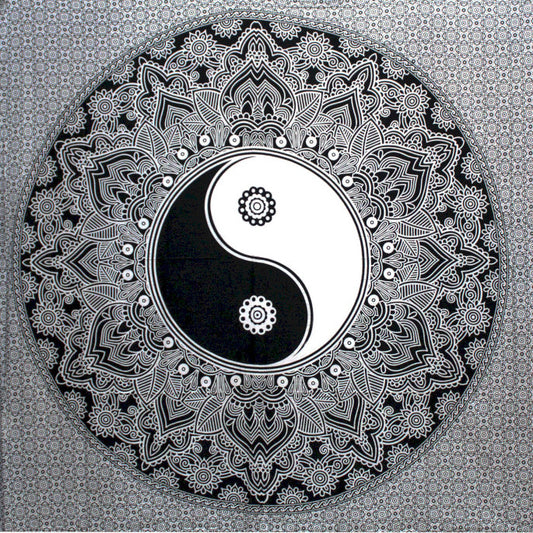 Dessus de Lit Double/ Tenture noir et blanc avec motif du Yin Yang - 230 x 200 cm - 680 gr.