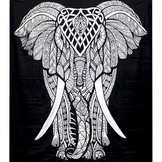 Couvre-lit/ Suspension Murale en coton - Motif noir et blanc 'Eléphant' - 230 x 200 cm - 680 gr.