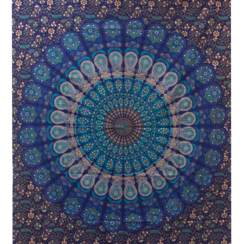Tenture Murale/ Couvre-Lit Double en Coton - Mandala de Paon - 230 x 200 cm - 600 gr.