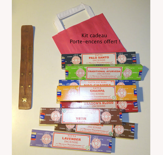 🎁 PACK CADEAU ! 8 encens de chez 'Satya, Agarbatti' + 1 porte-encens en bois offert ! Très bonne qualité, marque reconnue, parfait pour vos ambiances !