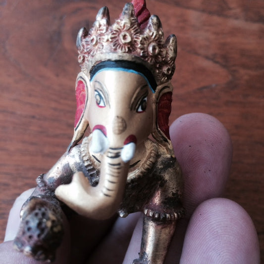 RARE ! Bébé 'Ganesh' plaqué Or, de 9x5x6 cm - Peint à la main !