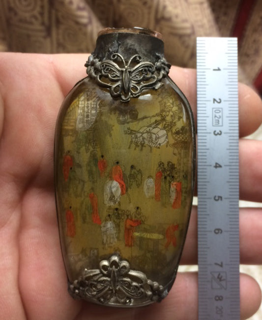 Authentique flacon a parfum Chinois, modèe ancien en verre avec armature ! 8x4x2,5 cm