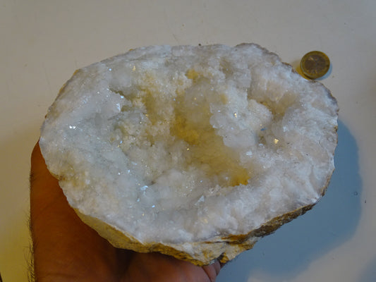 Géode en quartz/ Cristal de roche naturel de 17x17x9 centimètres - 1 610 grammes. Magnifique pièce presque ronde !
