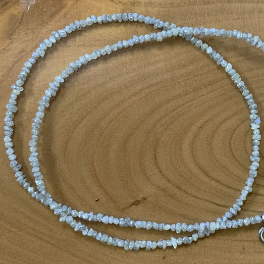 Diamant brut et naturel (diamant gris clair), perles facettées de 2/3 millimètres ! En bracelet de 17 à 19 cm ou en collier de 44 cm. Qualité AA à AAA !