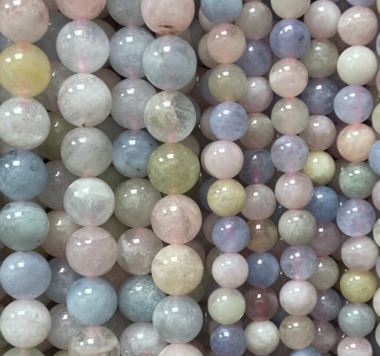 Béryl (Aigue-marine • Morganite • Émeraude) – Perles rondes 6 ou 8 mm • Fil de 38/39 cm • Bracelet 17 à 21 cm • Collier 45 cm • Sautoir 60 cm. Qualité AA