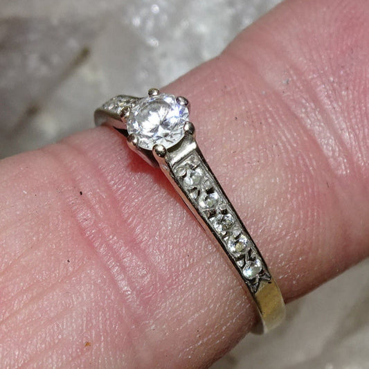 Bague haut de gamme, 'Solitaire' Or gris oxydes zirconium, 9 carats - 1,8 grammes (Taille 53 Fr). Très belle qualité pour ce joyau et ses 10 satellites en oxyde de zirconium ! Parfait !