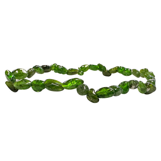 Diopside chromifère, bracelet de 17 à 21cm, collier de 42cm et sautoir de 60cm. Perles de type 'Graine' de formes naturelles montées sur fil de haute résistance !