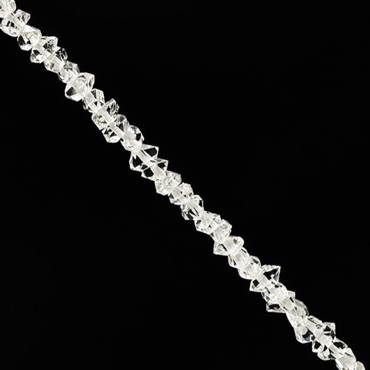 Cristal 'Herkimer' (rare), fil de 39 centimètres agrémenté de 115 pièces environ, chacun mesurant 6 à 9 millimètres. 39 centimètres de longueur. Vendu en bracelet, collier ou fil/ rang de perles, parfait !
