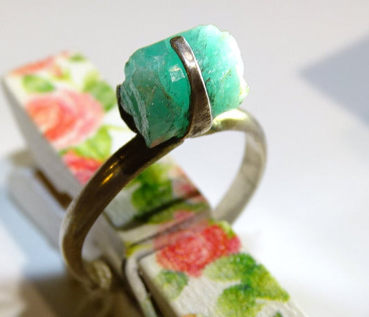 Bague en émeraude en Argent 0.925, taille 56 Fr. Pierre brute en provenance de Colombie, les plus belles du monde !