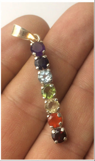 Pendentif '7 chakras' en Argent 0.925, pierres de qualité 'gemme', sertis de 55 millimètres de hauteur x 5 x 4 millimètres. Superbe pièce, parfait !